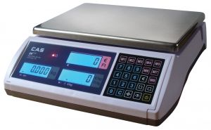 | Cas ER plus lapos árszorzós mérleg | A CAS készülékeinek a memóriájába hét közvetlenül, és közel kétszáz gyorskóddal elérhető árucikk programozható, képesek az árak megjelenítésére euróban, és természetesen az árszorzás és a nullázás műveleteinek az elvégzésére is. |