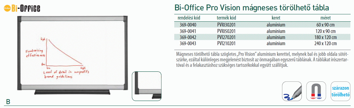 Mágneses törölhető fehér tábla alumínium keretes Bi-Office ProVision /garancia 10 év/ | Akció | Nettó ár | Bruttó ár | |||