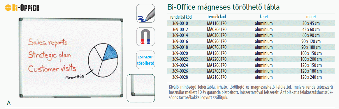 369-0012 | Fehér tábla | Mágneses törölhető fehér tábla alumínium keretes 45x60 -MA0206170- Bi-Office | 3 990 Ft | 5 067 Ft | |