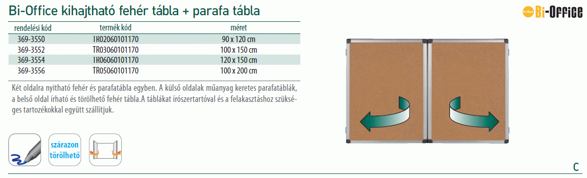 369-3554 | Fehér tábla | Fehér tábla+parafa tábla alumínium keretes kihajtható 120x150 -TR06060101170- Bi-Office | 46 900 Ft | 59 563 Ft | ||
