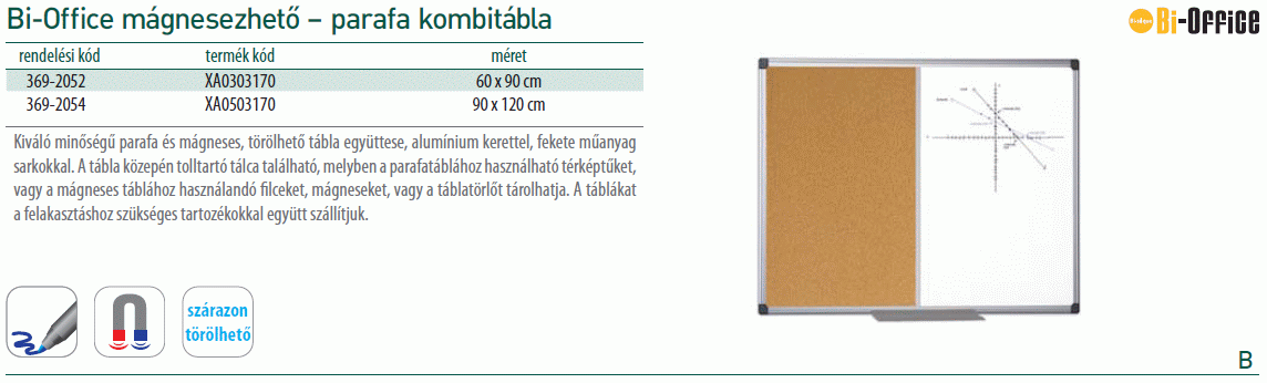 369-2052 | Fehér tábla | Fehér tábla+parafa tábla alumínium keretes 60x90cm -XA0303170- Bi-Office | 6 990 Ft | 8 877 Ft | |