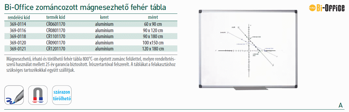 Zománcozott mágneses törölhető fehér tábla alumínium keretes Bi-Office /garancia 25 év/ | Akció | Nettó ár | Bruttó ár | |||