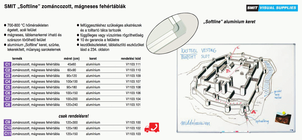 Zománcozott mágneses törölhető fehér tábla Softline keretes Smit /garancia 10 év/ | Akció | Nettó ár | Bruttó ár | |||