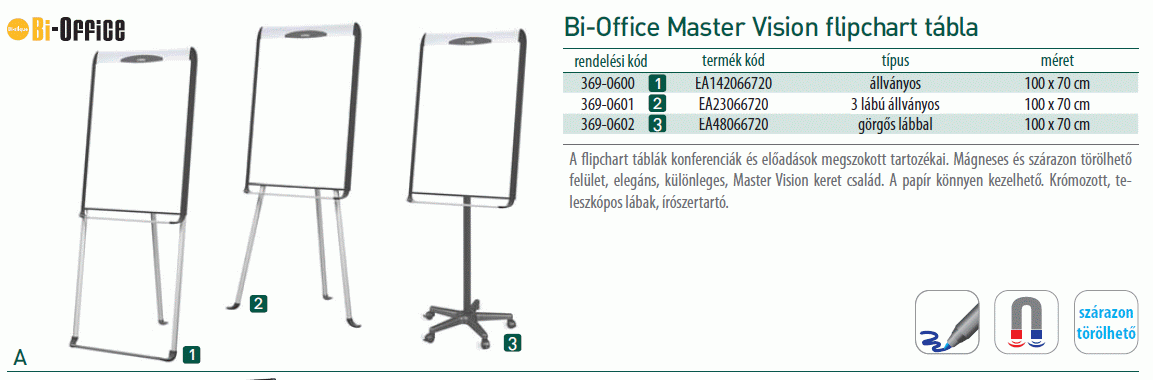 369-0601 | Flipchart tábla mágneses70x100 3 lábú MasterVision Bi-Office | 23 590 Ft | 29 959 Ft | |