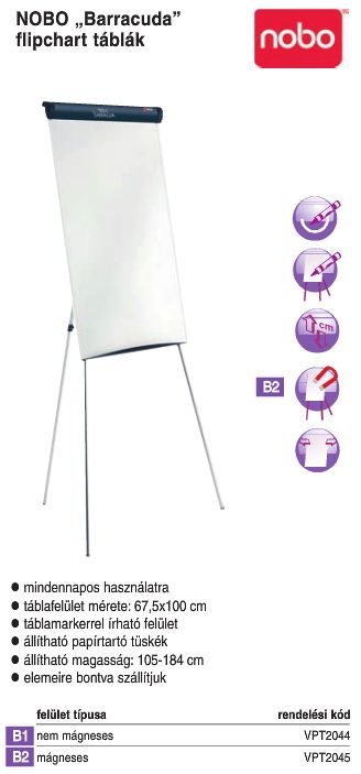 Flipchart tábla | VPT2045 | Flipchart tábla mágneses törölhető 67,5 x 100 cm Nobo Barracuda | 20 990 Ft | 26 657 Ft | ||