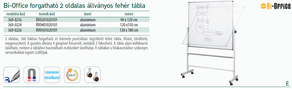 Fehér tábla | 369-0216 | Mágneses törölhető fehér tábla gurulós, forgatható 2 oldalas 90x120cm Bi-Office | 59 400 Ft | 75 438 Ft | ||