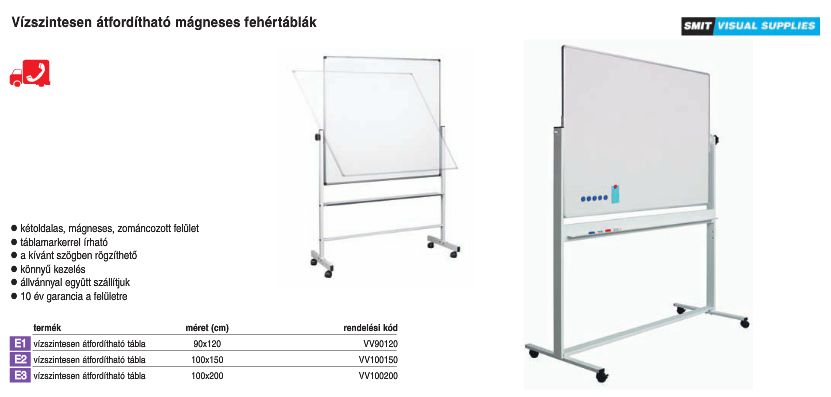 Fehér tábla | VV100200 | Mágneses törölhető fehér tábla gurulós, forgatható 2 oldalas zománcozott 100x200cm Smit | 110 900 Ft | 140 843 Ft | ||