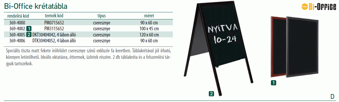 Krétatábla Bi-Office | Akció | Nettó ár | Bruttó ár | |||