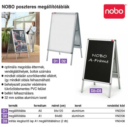 VN2204 | Megállító tábla alumínium keretes poszteres A0 Nobo | 51 900 Ft | 65 913 Ft | |
